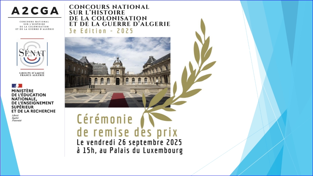 Le vendredi 26 septembre 2025, le Palais du Luxembourg a accueilli la cérémonie de remise des prix du Concours national sur l’Histoire de la colonisation et de la guerre d’Algérie.