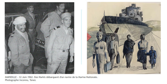 À travers sa passion du dessin, Madame Malgras a choisi d’aborder les différentes formes de mobilité des Harkis, à la fois sur le terrain durant la guerre d’Algérie, mais aussi en France durant leur exil.
