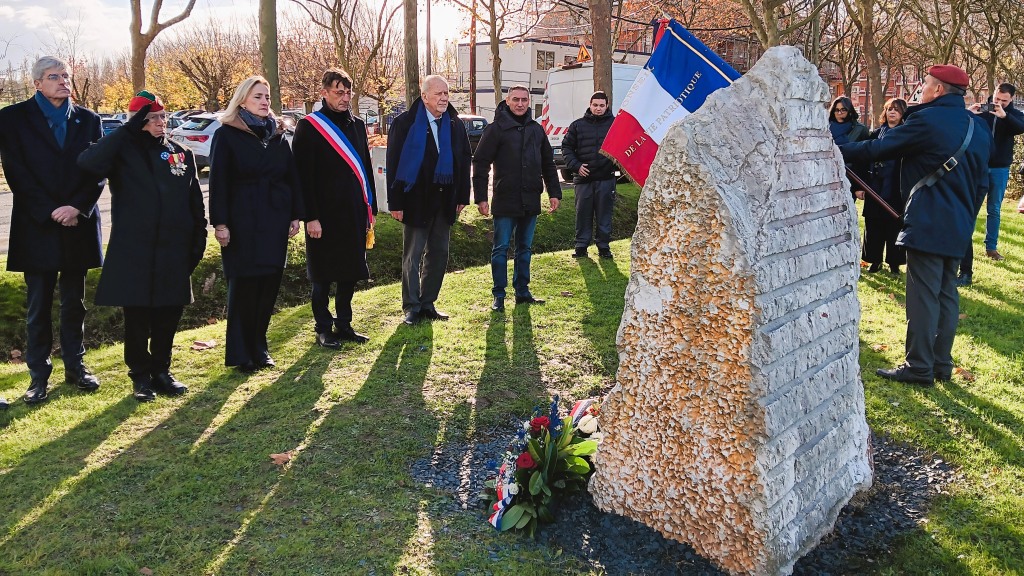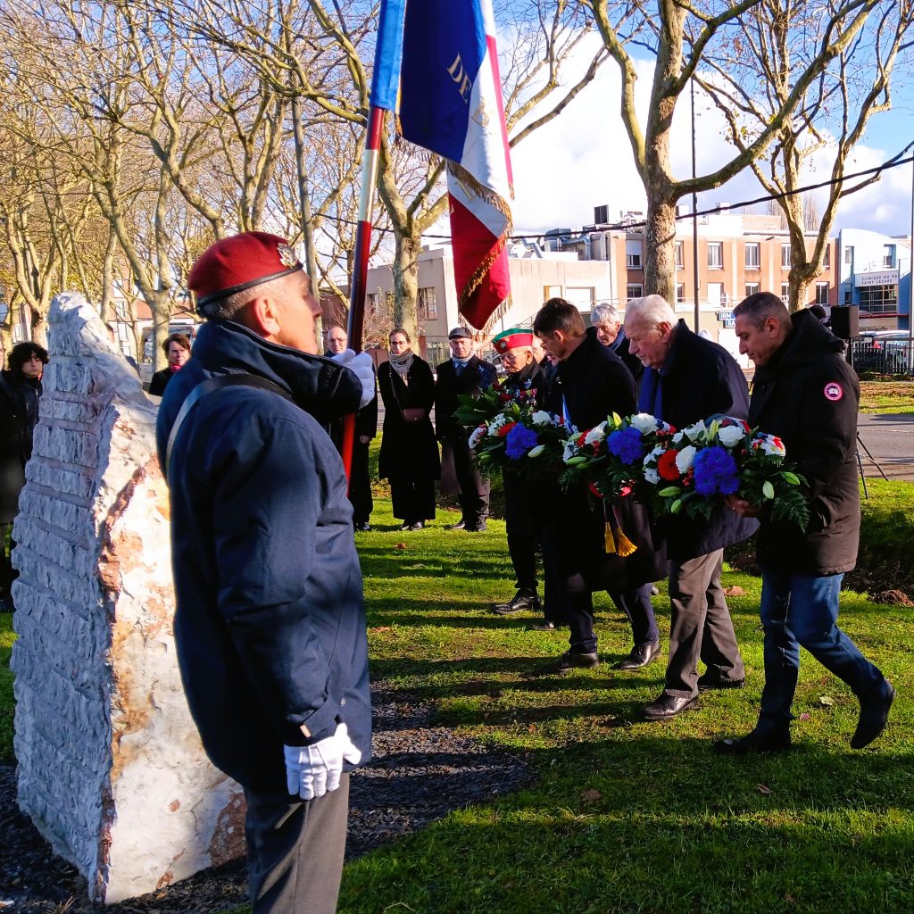 Devant la stèle de la cité du Stade, une cérémonie de dépôt de gerbe a été organisée. Elle était présidée par Franck Pia, maire de Beauvais, et Françoise Dumas, présidente de la CNIH, en présence de Serge Carel, Malika Djabari, Farid Arifi, Smaïl Khaldi, président du Collectif Citoyenneté, à l’origine de la stèle et Abdellah Krouk représentant la fédération nationale de résistance des Harkis.
